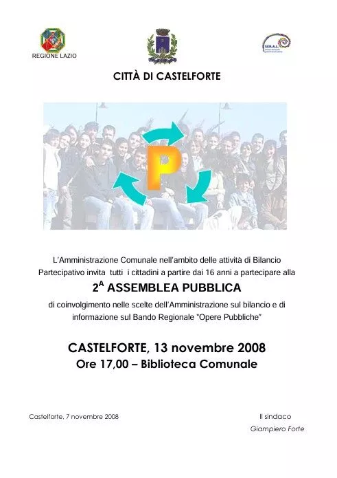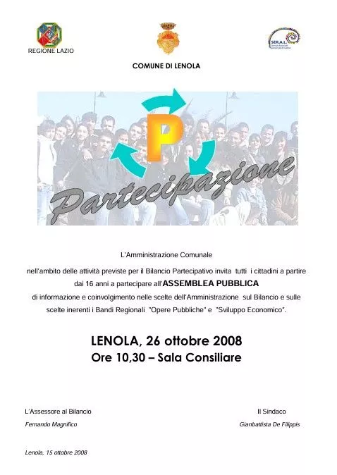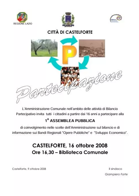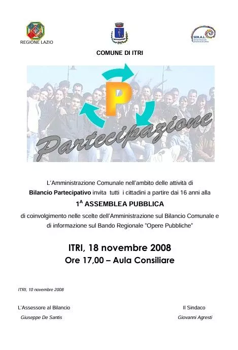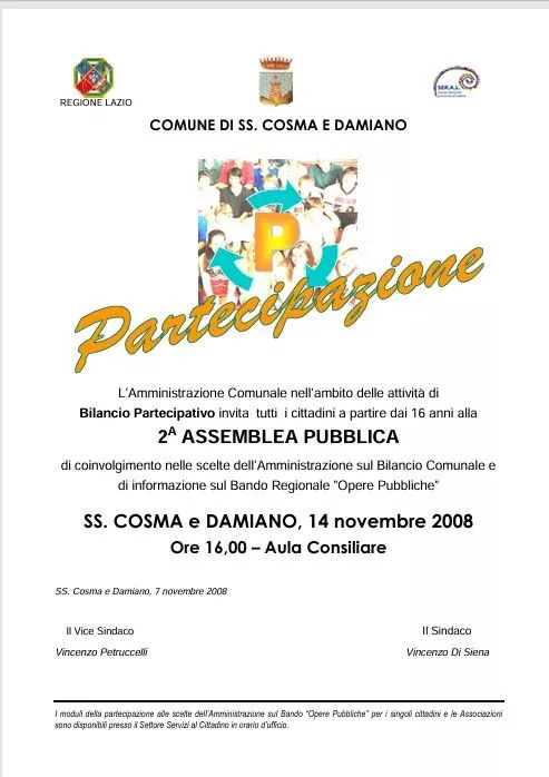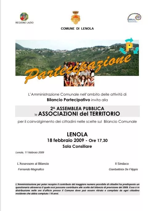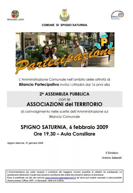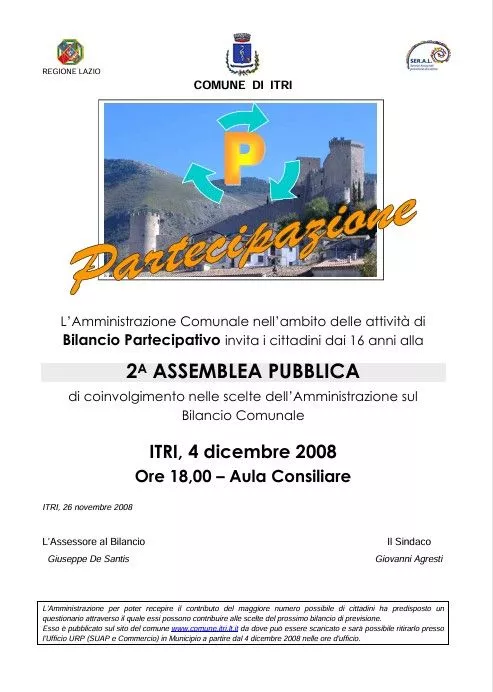 Sette Comuni dell'Associazione hanno presentato, con la consulenza di Impresa Insieme, un progetto di bilancio partecipativo al bando regionale del 2008. Essi sono: Itri, Lenola, San Felice Circeo, Santi Cosma e Damiano, Minturno, Spigno Saturnia.