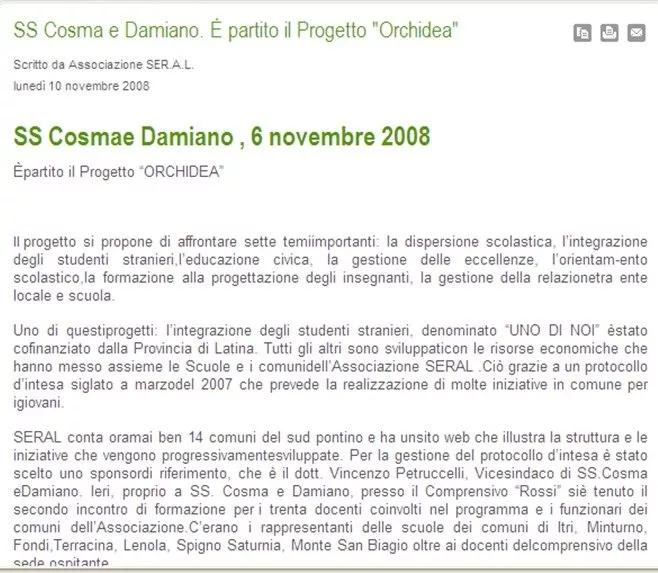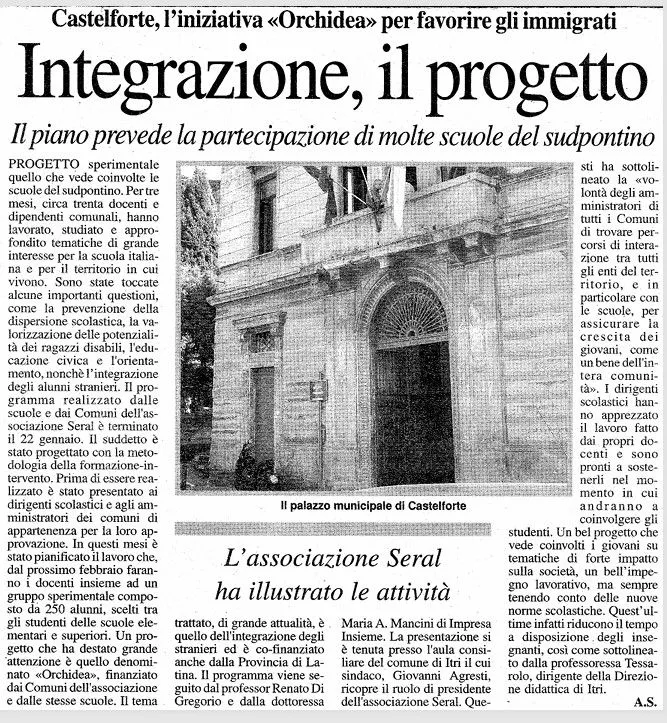 Dal 14 Marzo 2008 al 30 Giugno 2009 - Il Progetto è stato Insignito del Premio Basile 2009Il progetto nasce sulla scorta di una sollecitazione scaturita dal finanziamento della Provincia di Latina su una serie di tematiche, tutte molto importanti per le Scuole di SERAL: