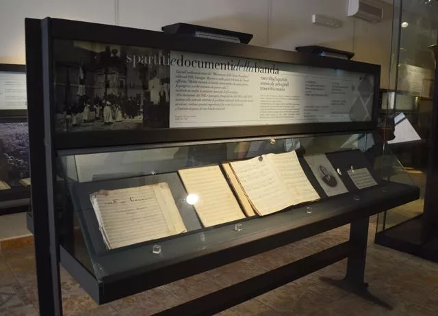 la tradizione bandistica (flicorni, flicornini, trombe, bassi a tracolla, contrabbassi, grancassa appartenuti alle bande musicali arsolane dell’Ottocento, una ricca raccolta di spartiti musicali autografi trascritti a mano, reperti d’epoca e documenti fotografici attestanti la ultrasecolare presenza della banda musicale ad Arsoli).