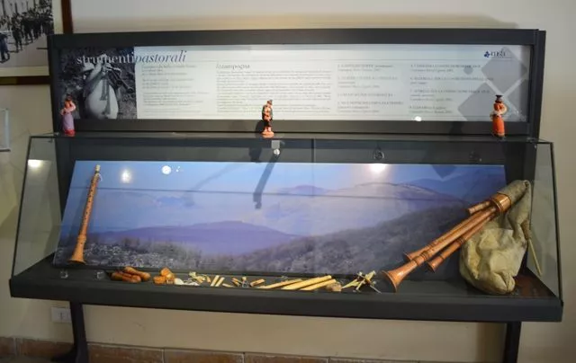 gli strumenti pastorali (flauti di canna, clarinetti di canna, zampognetta di canna, flauti di corteccia, corni di animali e vari tipi di campanacci usati per le greggi e gli animali da stalla);